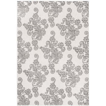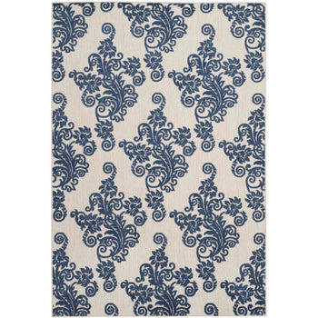 Made in Turkey from premium polypropylene, this area rug is not only stylish but also perfectly suited for both indoor and outdoor use, providing flexibility to enhance any room or outdoor setting. The enchanting royal blue pattern against the light grey backdrop infuses your home with a classic and regal charm, effortlessly catching the eye while complementing a variety of decors.