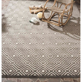 Designed to be versatile, this rug is suitable for both indoor and outdoor use, extending your living space to patios, decks, and beyond. The dynamic geometric pattern, evident in the image, features an array of elegant diamond motifs that create a sense of rhythm and flow throughout the design. This pattern adds visual interest and depth, making it an instant focal point wherever it is placed.