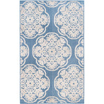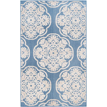 Invite timeless elegance into your home with this power-loomed light blue and beige area rug, where