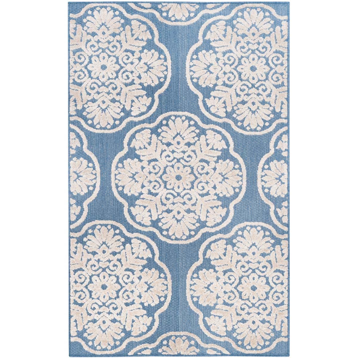 Transform your living space with this exquisite 4' x 6' small rectangle area rug featuring a captivating light blue and beige color palette. The subtle blend of soothing light blue provides a serene backdrop for the intricate beige pattern, infusing a sense of calm and elegance into any setting.