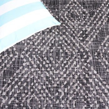 Constructed with precision and care in Turkey, this medium rectangle rug boasts a height of 1/4" and is made from a durable blend of 88% Polypropylene and 12% Polyester, ensuring it is not only soft to the touch but also tough enough to withstand the rigors of both indoor and outdoor use.