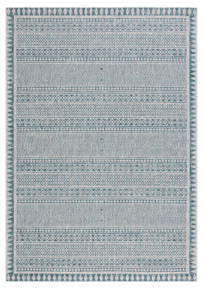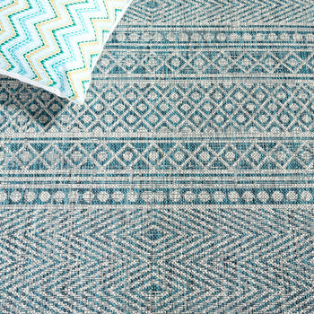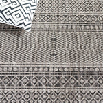 The rug's pattern, as depicted in the image, showcases an array of geometric motifs and tribal-inspired elements, offering visual interest and a touch of worldly charm to your floors. Its intricate patterns and symmetrical design lend themselves to various decorative styles, whether it's anchoring a minimalist space or adding subtlety to a vibrant setting.
