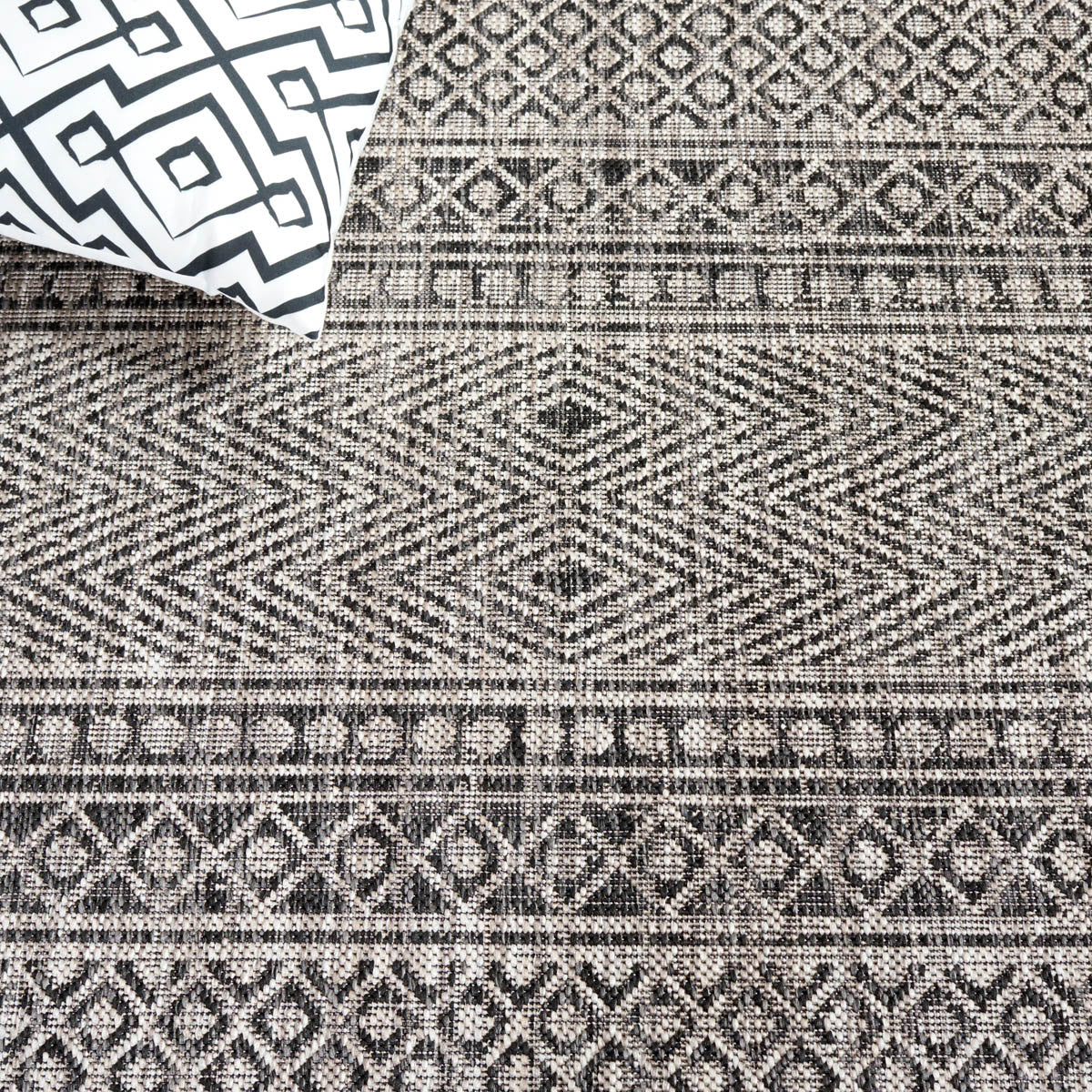 Infuse your living space with a touch of elegance and intricate design with this beautifully crafted 5'-3" X 7'-7" area rug. With a color palette of sophisticated black and warm beige, it offers a balanced and versatile look that seamlessly integrates with any indoor or outdoor decor theme. The medium rectangle shape of this lush carpet, at a comfortable height of 1/4", paves the way for a cozy yet stylish ambiance.