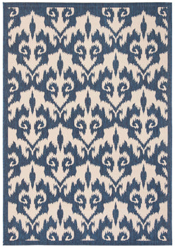Elevate your indoor or outdoor space with our exquisite area rug, meticulously crafted in Turkey. Boasting a versatile medium rectangle size of 5' 3" X 7' 7" and a comfortable pile height of 1/4", this rug provides a perfect blend of style and practicality. The stunning navy and beige color palette, depicted in an intricate damask inspired pattern, adds timeless elegance to any decor.