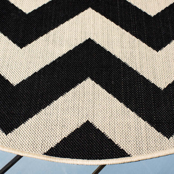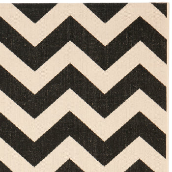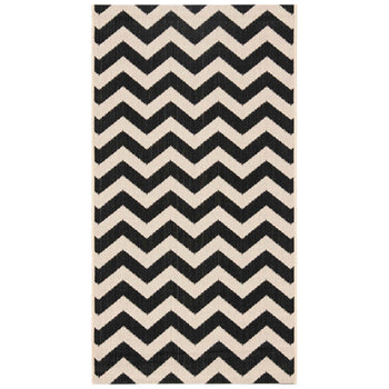 Elevate your living space with our contemporary designed area rug, expertly sized at 2'-7" X 5' to accentuate any small area, entrance, or hallway. This sleek small rectangle rug boasts a bold, eye-catching chevron pattern in a sophisticated black and beige color palette that will seamlessly complement both modern and traditional decor.