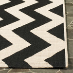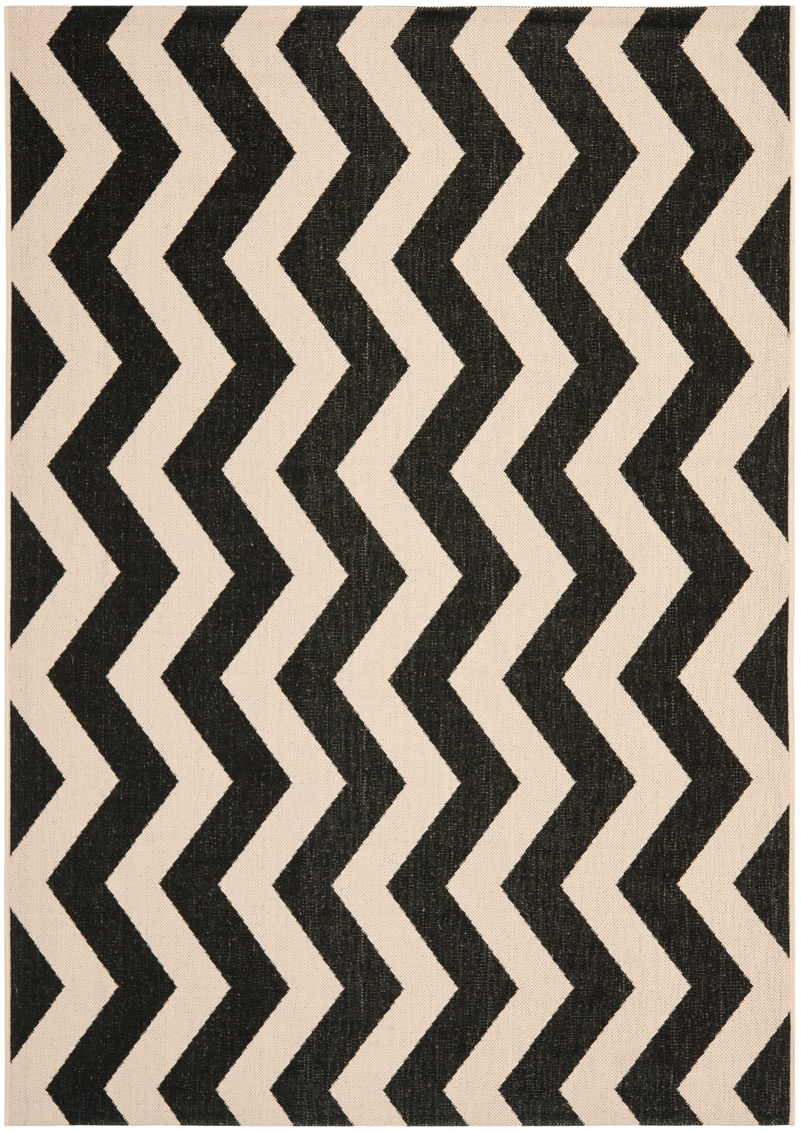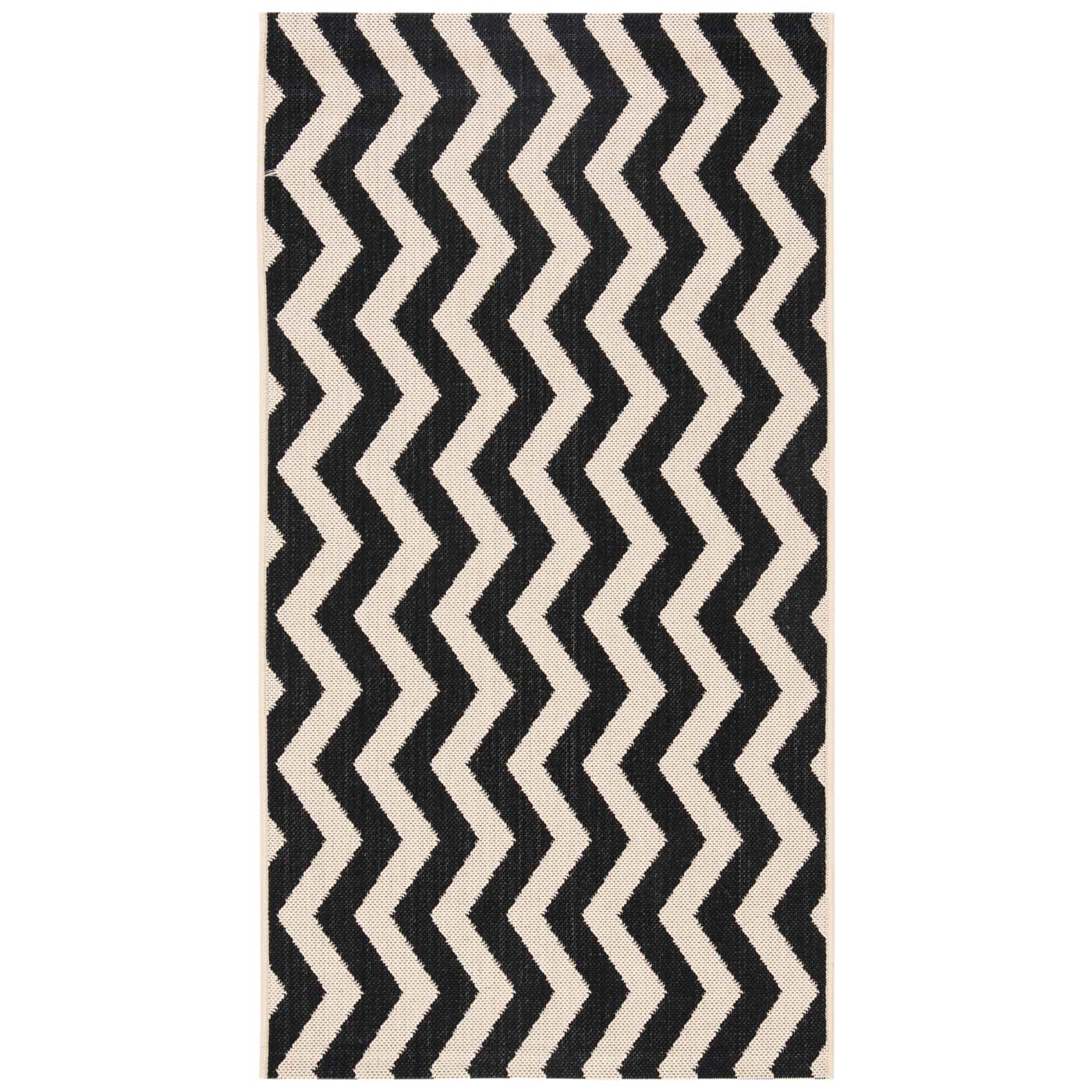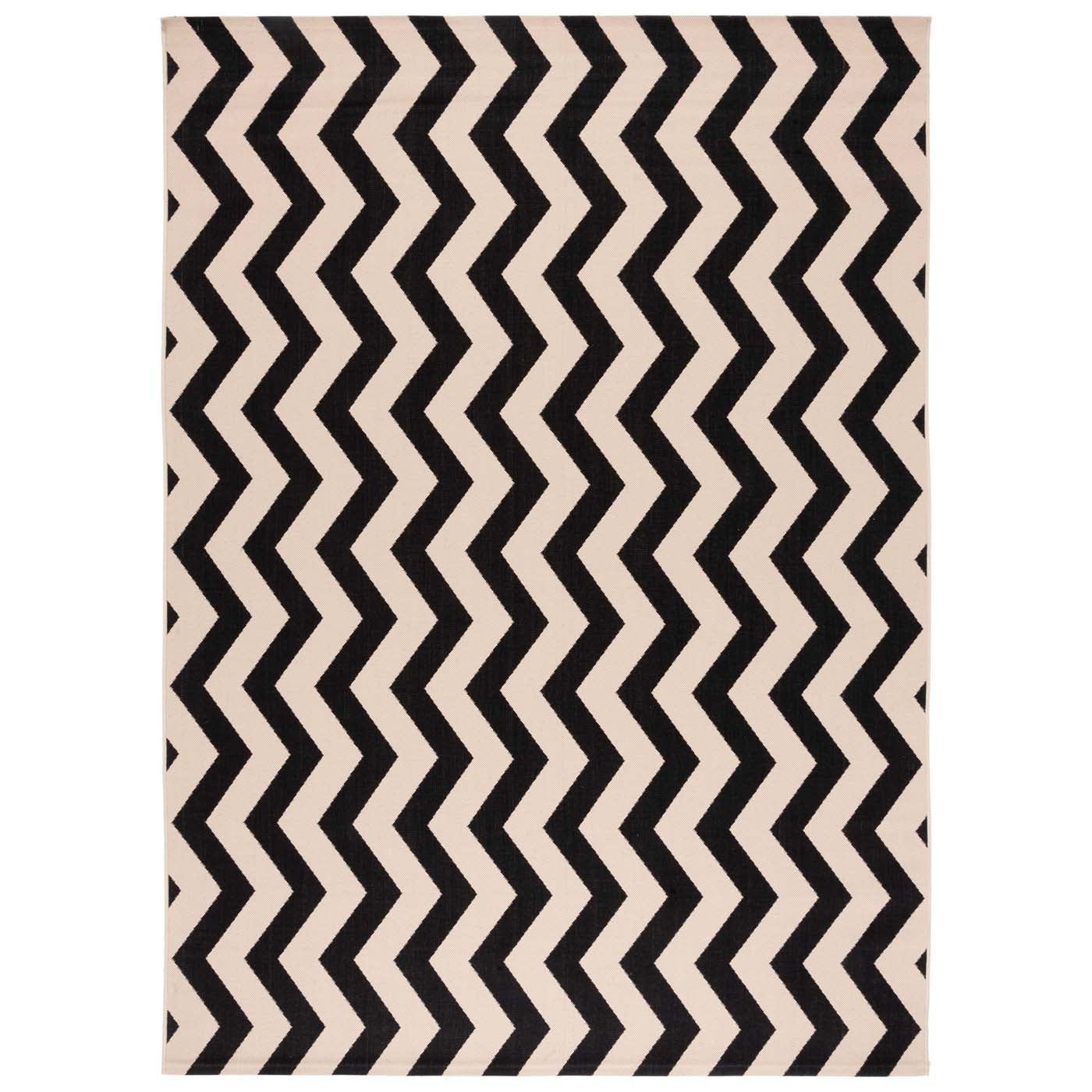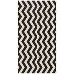 Introduce timeless elegance to your home with our exquisitely crafted area rug, the perfect blend of classic charm and modern versatility. Measuring an adaptable 2'-7" X 5', this small rectangle rug is designed to enhance any space with its sleek black and beige chevron pattern.