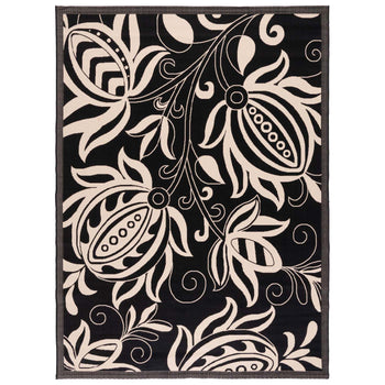Introducing our versatile Black and Sand Area Rug, designed with a sleek, small rectangular shape measuring a comfortable 2 feet 7 inches by 5 feet with a subtle height of 1/4 inch. Crafted using a precise power-loomed technique, this rug demonstrates superior craftsmanship thanks to its robust 88% polypropylene and 12% polyester blend.