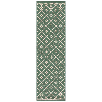 Elevate your living space with the timeless elegance of our Dark Green/Beige Indoor/Outdoor Area Rug, designed to infuse any room or patio with sophistication and style. Perfectly sized at 2'-7" X 5', this small rectangle rug boasts a low profile with a height of just 1/4", allowing for easy placement and seamless integration into your home d?cor.