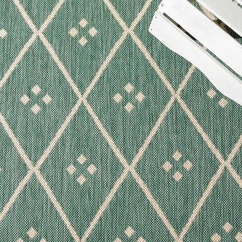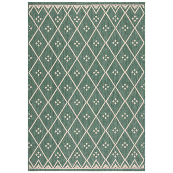 Whether you are accentuating your living room, dining area, or outdoor space, this Dark Green/Beige rug is a versatile choice that bridges the gap between functionality and fashion. Bring home a piece that not only elevates your space but also withstands the elements of life and nature.