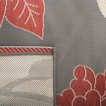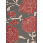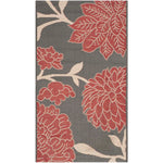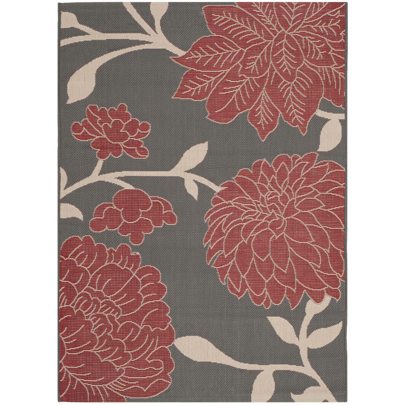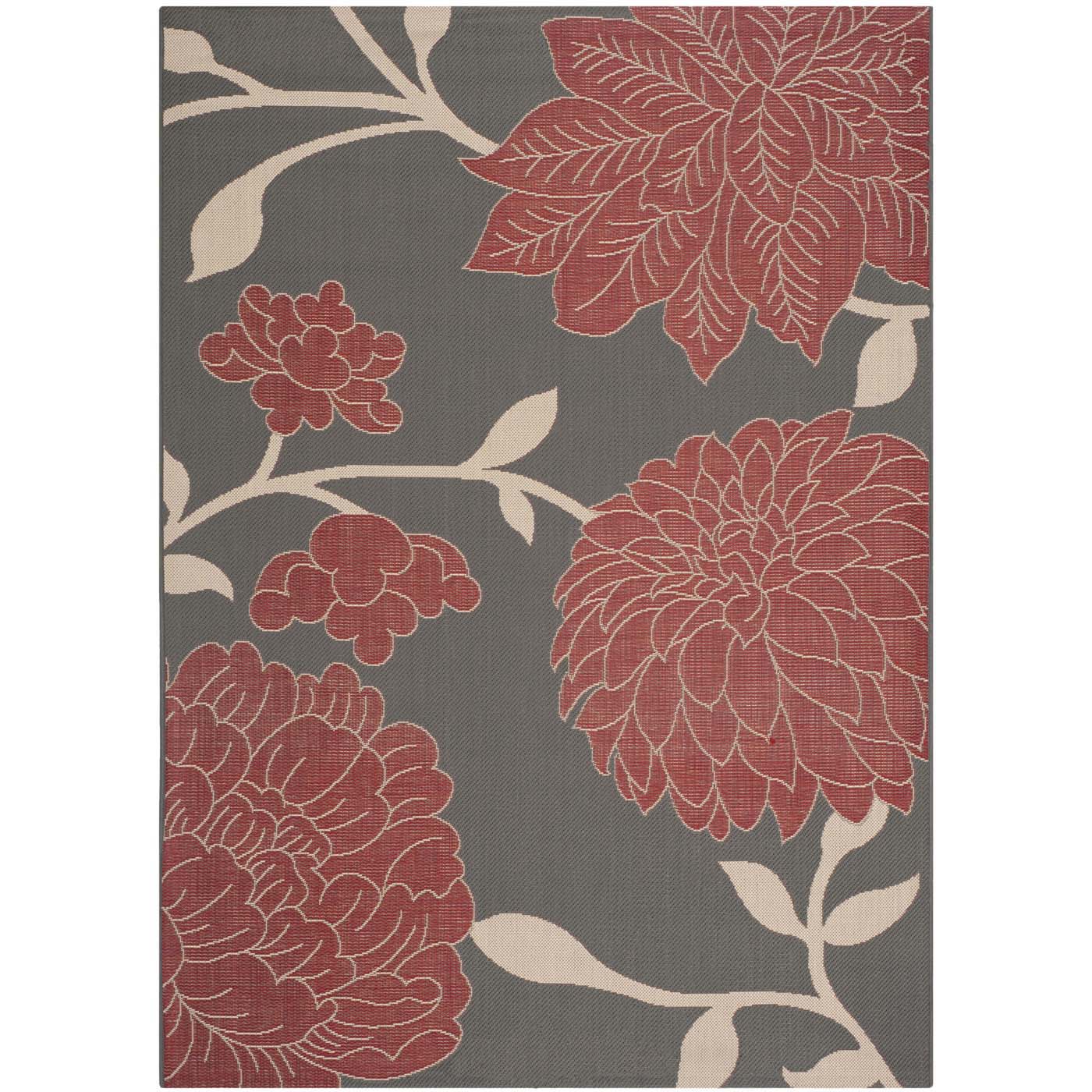 This particular rug features a striking pattern that exudes elegance and sophistication. The contrast between the anthracite base and the red floral motifs provides a classic yet contemporary ambiance that can elevate any space. The low pile height of 1/4 inch ensures it is easy to clean and maintain, perfect for both indoor coziness and outdoor resilience.
