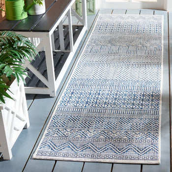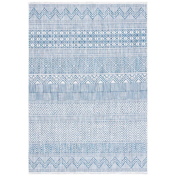 Whether placed in your living room, on your patio, or under a dining table, this navy/grey area rug seamlessly combines style, comfort, and peace of mind. Embrace the fusion of functionality and artistry with this stunning, Turkish-made addition to your home.