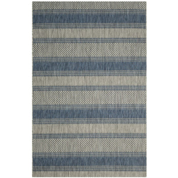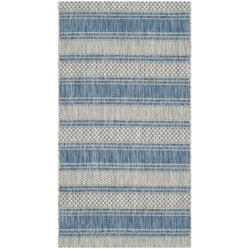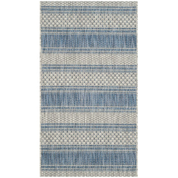 Introducing our versatile and stylish area rug, meticulously crafted in a convenient small rectangle size of 2'-7" X 5'. This contemporary piece is a harmonious blend of fashion-forward grey and navy hues, designed to enrich your indoor or outdoor spaces with its subtle charm.