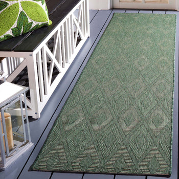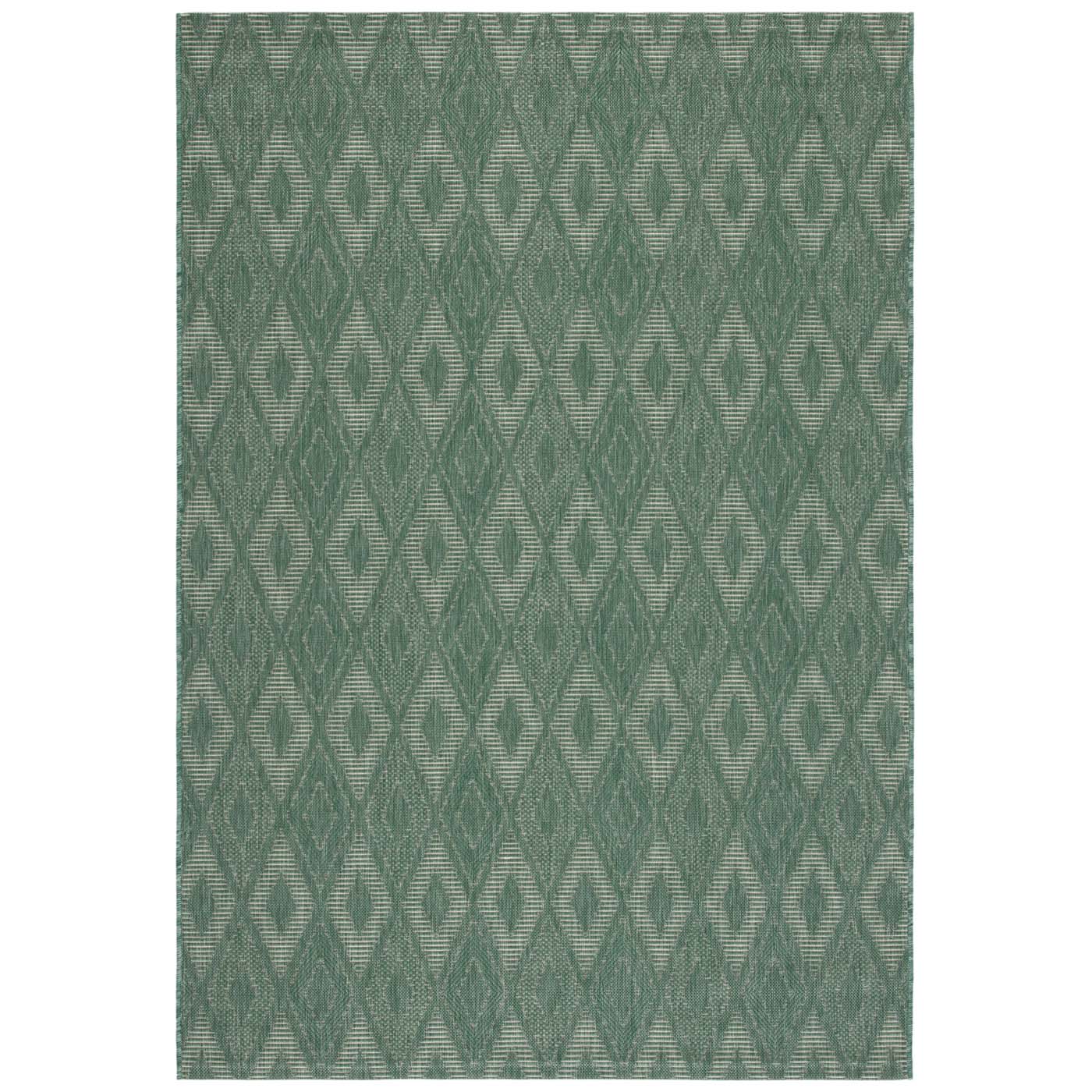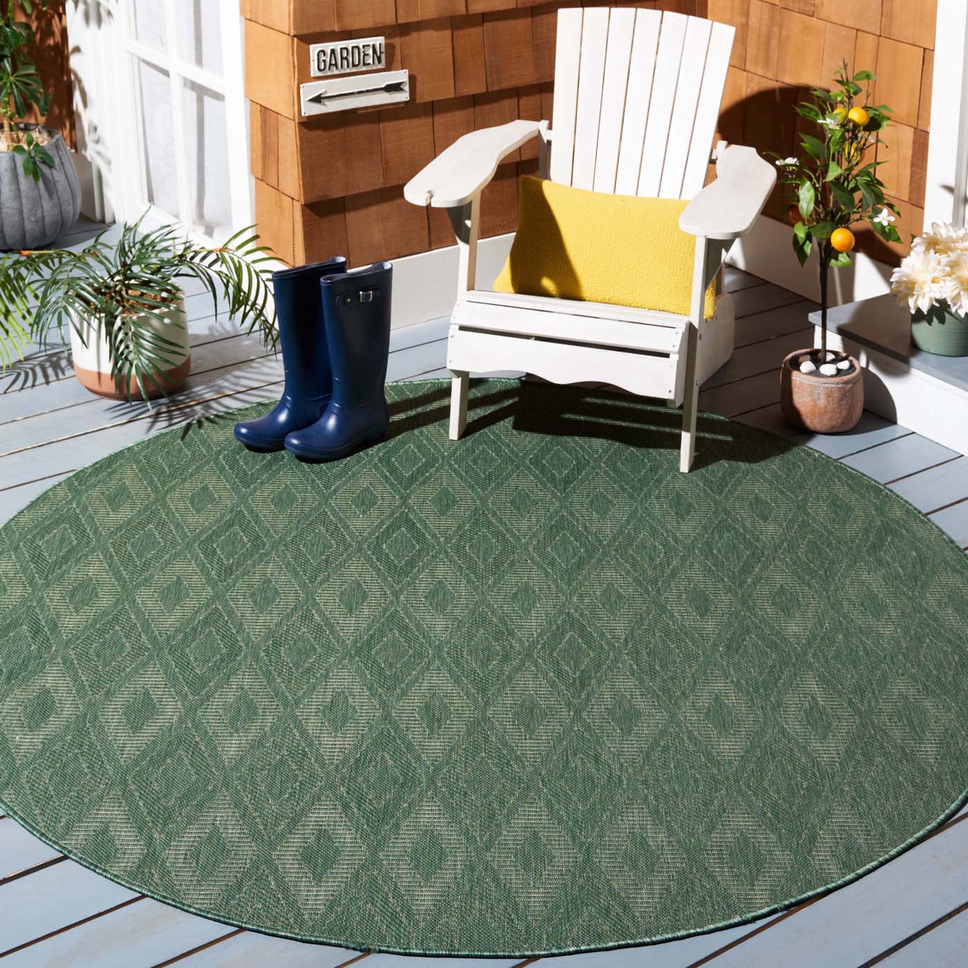 Introducing our elegant and durable Small Rectangle Area Rug, a perfect blend of style and practicality for both indoor and outdoor spaces. This area rug, measuring a versatile 2'-7" X 5', is colored in a sophisticated palette of dark green and beige, which effortlessly complements various decor themes.