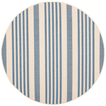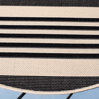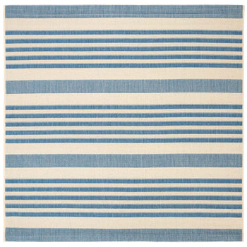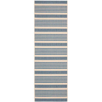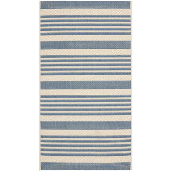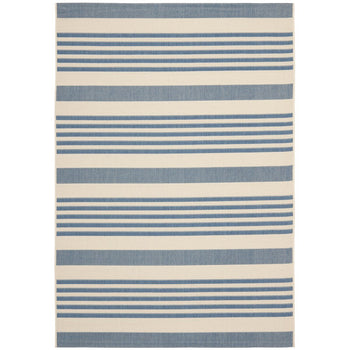 The delightful pattern displayed on the rug features a harmonious blend of beige and blue stripes that invoke a sense of tranquility and coastal allure. Each stripe, varying in thickness, adds a visual depth and texture that will complement your home aesthetics beautifully.