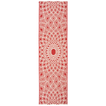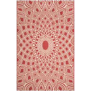 The vivid red and beige color palette of this rug is complemented by the intricate pattern that graces its surface?a mesmerizing blend of geometric shapes and dynamic designs that draw inspiration from both contemporary and traditional aesthetics. The pattern exudes energy and personality, creating a bold statement that will captivate and impress.