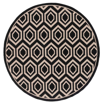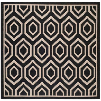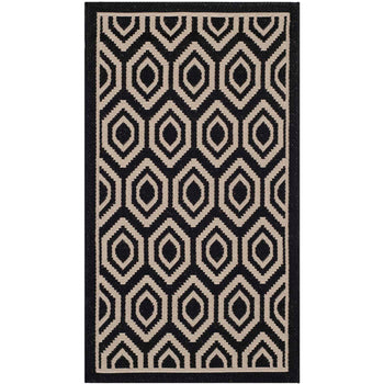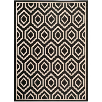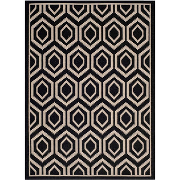 The mesmerizing rug pattern features interlocking hexagon shapes bordered with clean lines, creating an eye-catching design that will complement a wide range of decorating styles. The color palette of black and beige ensures versatility and effortless coordination with existing decor.