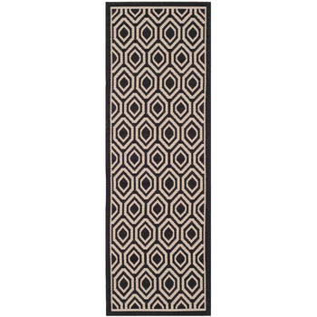 Elevate your space with the striking contrast and bold geometric patterns of our contemporary Black/Beige Runner Rug. This sophisticated runner, in a versatile 2'-3" X 6'-7" size, will add a touch of elegance and modern flair to your hallway, entryway, or any indoor/outdoor area you choose.