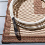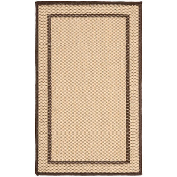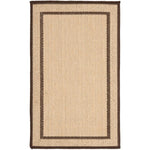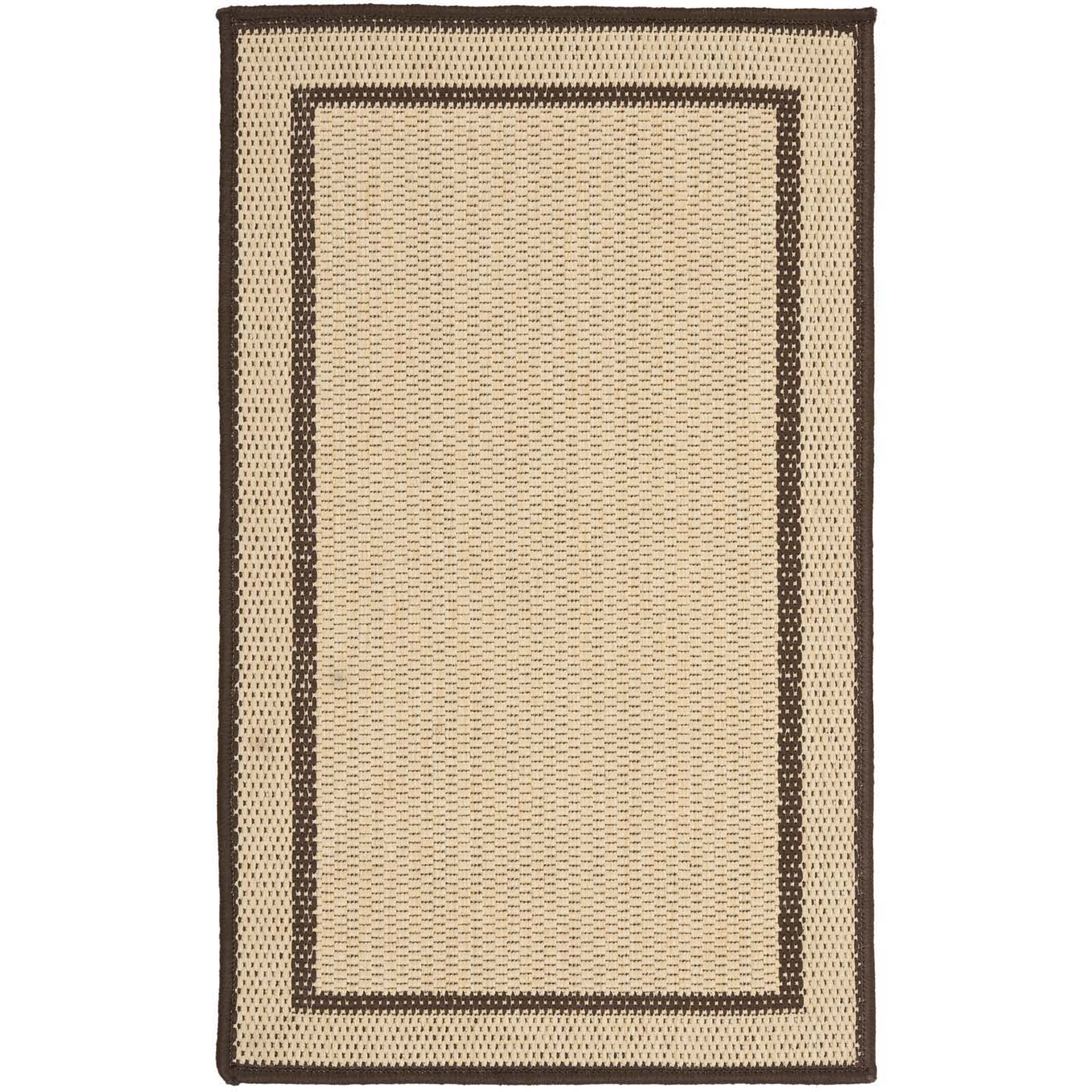 Elevate your living space, indoors or out, with the understated elegance of our Power Loomed area rug. Sized at a versatile 6'-7" X 9'-6" and sporting a medium rectangle shape, this rug presents a warm natural hue accented by a rich chocolate border, offering a classic look that harmonizes with any decor.
