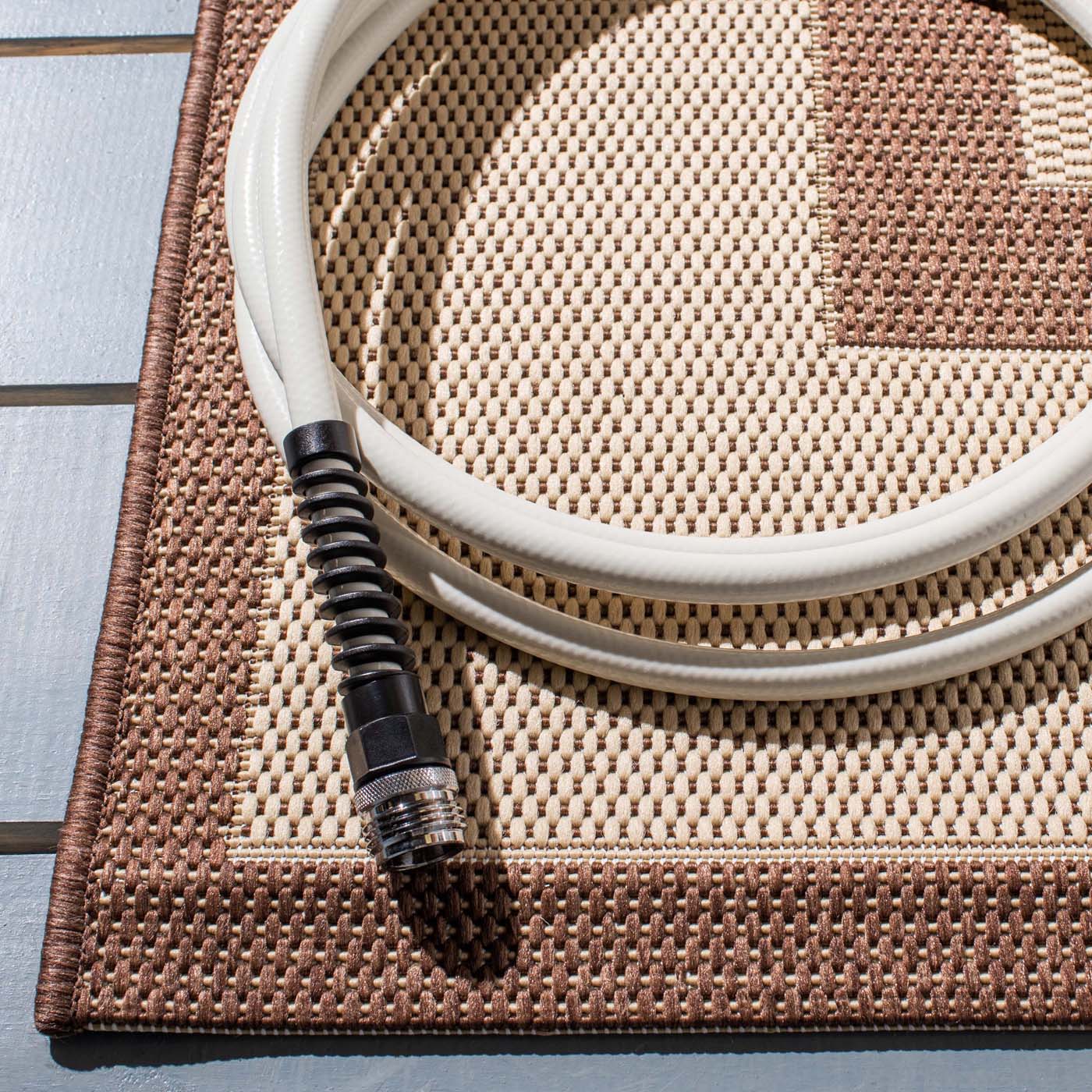 Whether gracing your patio, deck, or living room, this area rug's simple yet sophisticated design and durable construction make it a versatile addition to any space. Enjoy