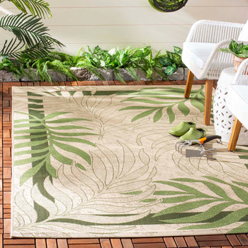 Experience the perfect blend of style, functionality, and peace of mind with our Cream/Green Indoor/Outdoor area rug, an exceptional choice that marries the art of design with the resilience of modern materials.
