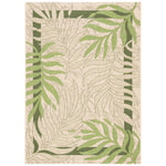 Featuring a lush botanical pattern, the design showcases an array of leaf motifs that swirl elegantly across the rug's surface, creating a serene and inviting atmosphere. The harmonious interplay of cream and green hues not only enhances the visual appeal but also makes the rug versatile enough to complement a wide range of color schemes and decor styles.
