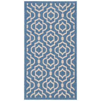 Elevate your home with this stunning 2' x 3'-7" accent rug, thoughtfully crafted in Turkey using state-of-the-art power-loomed techniques. This rug's classic yet contemporary design features an intricate pattern of geometric and curvilinear motifs, rendered in a harmonious palette of serene blue and warm beige, perfect for both indoor and outdoor decor.