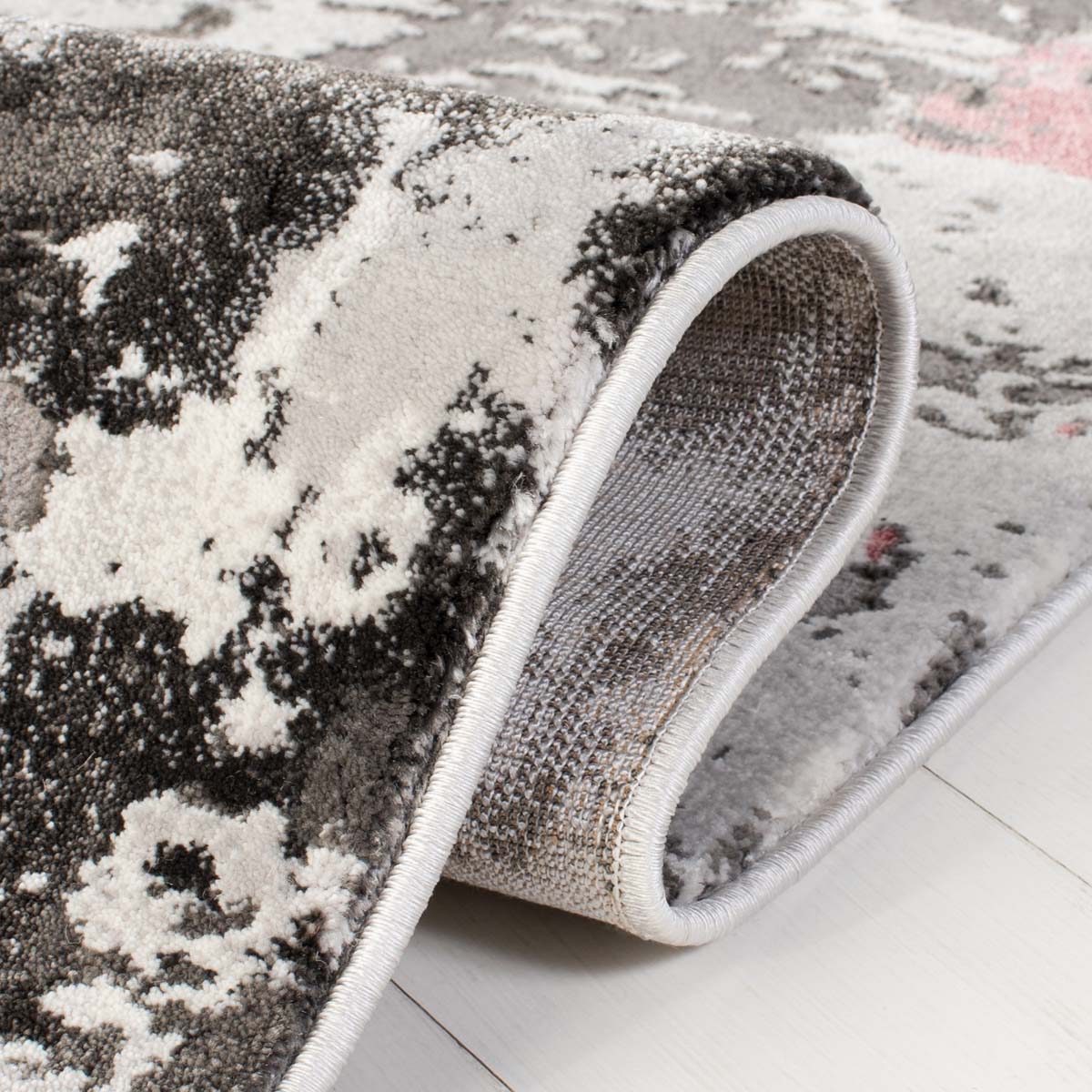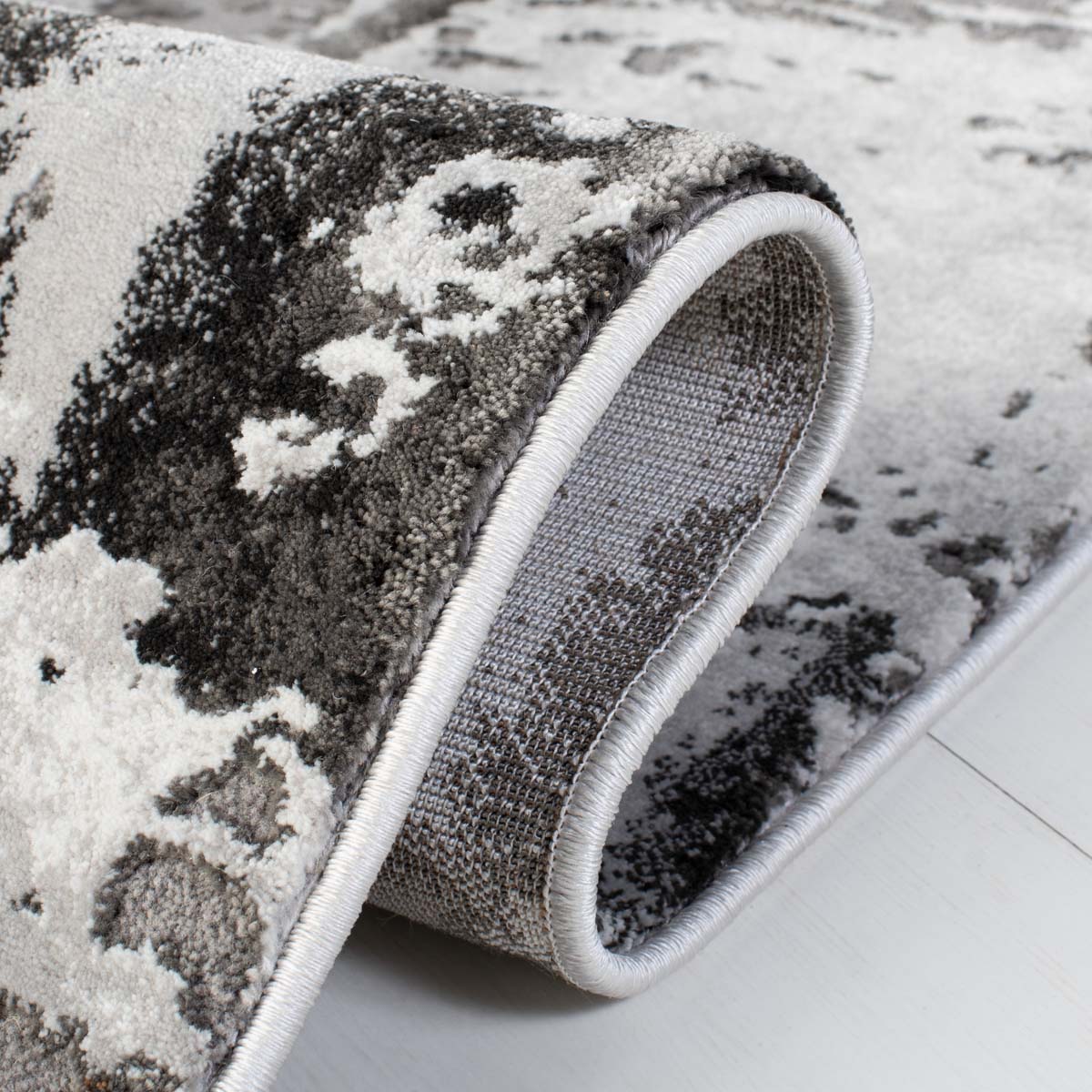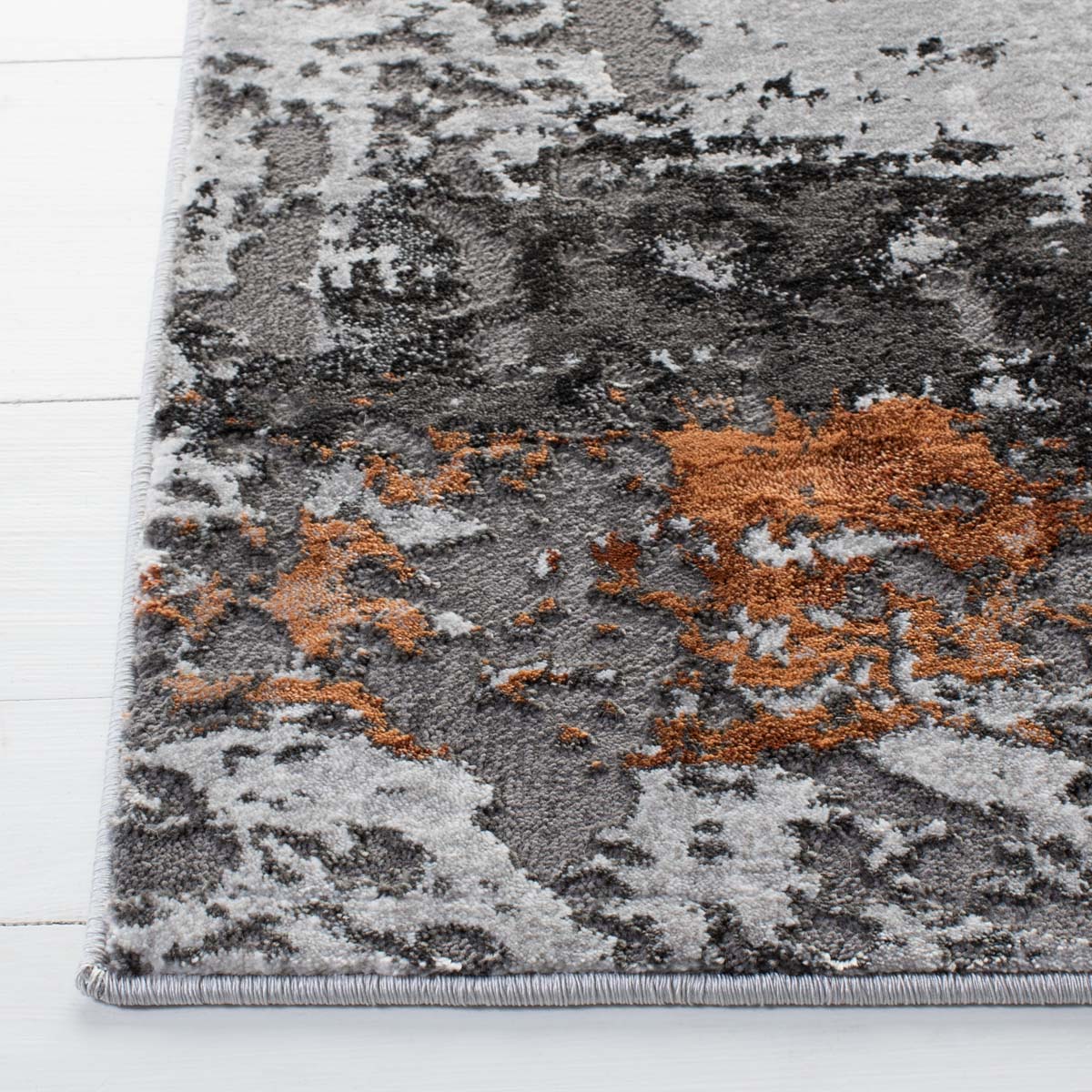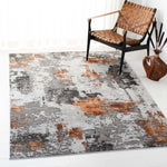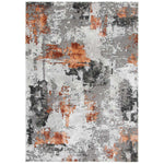 The rug's chic grey and vibrant orange hues, portrayed in a dynamic abstract pattern, add a pop of color and sophistication that will enhance any room. Made of a high-quality blend of 85% polypropylene and 15% polyester, this rug ensures easy maintenance and long-lasting resilience against everyday wear.