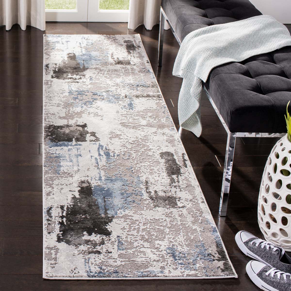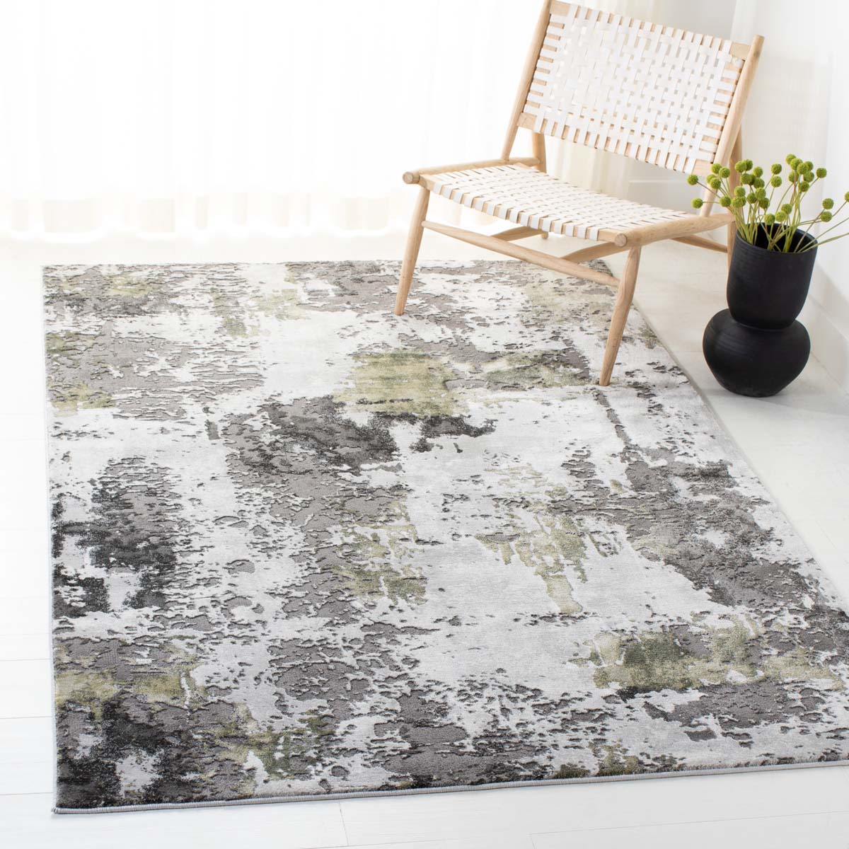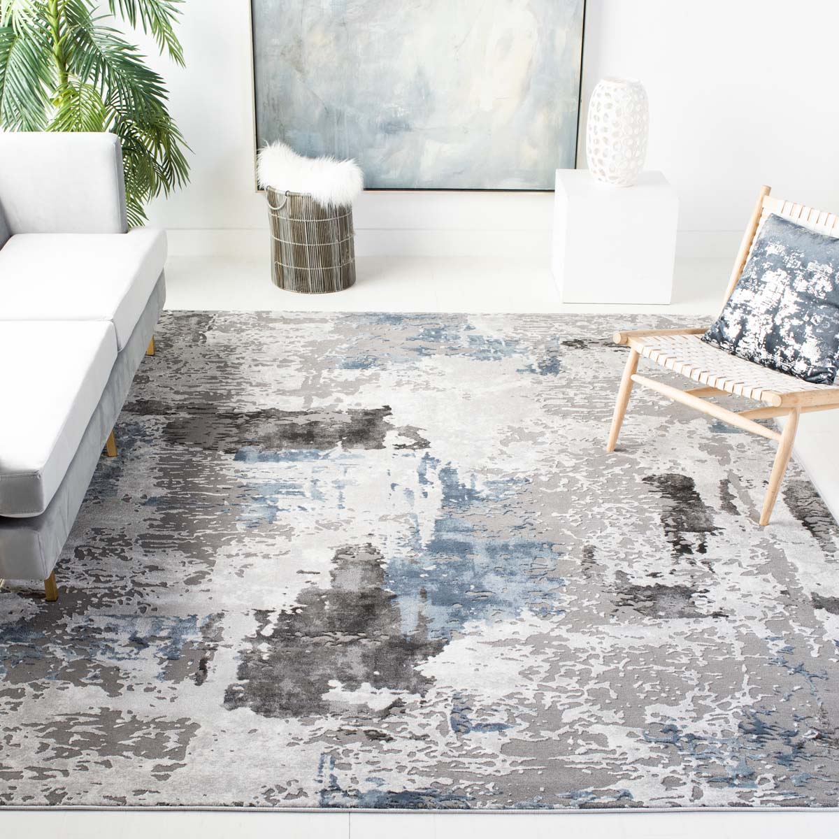 The rug's chic grey and vibrant orange hues, portrayed in a dynamic abstract pattern, add a pop of color and sophistication that will enhance any room. Made of a high-quality blend of 85% polypropylene and 15% polyester, this rug ensures easy maintenance and long-lasting resilience against everyday wear.