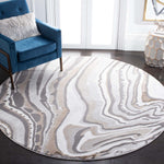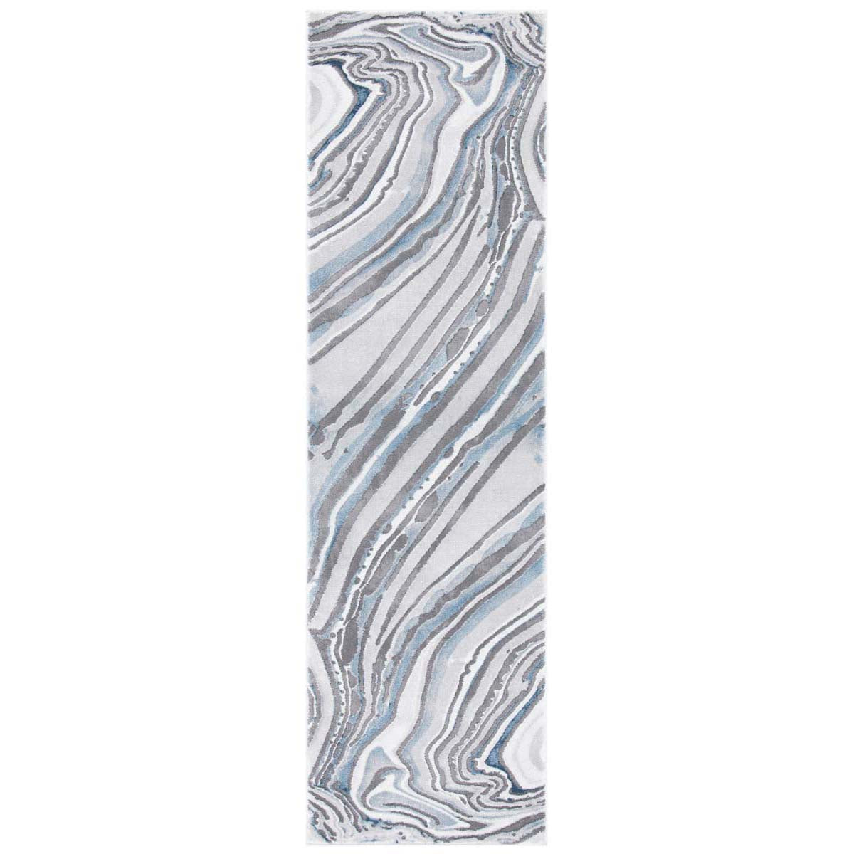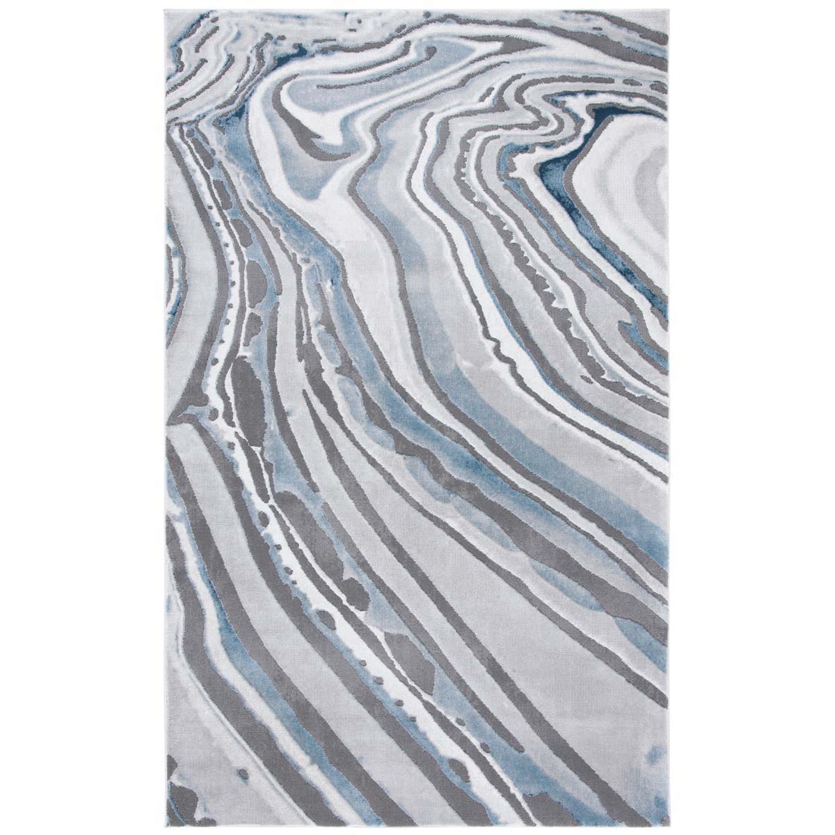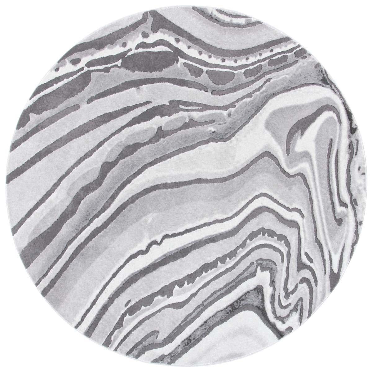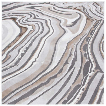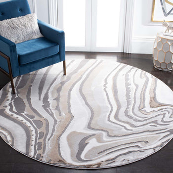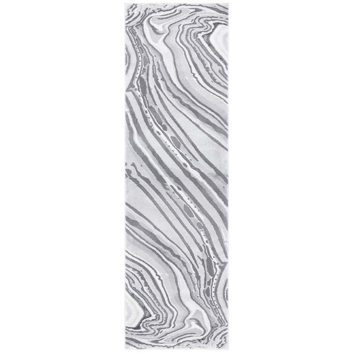 The rug exhibits a stunning light grey and grey color palette, seamlessly blending with a variety of decors while making a sophisticated statement. The captivating pattern inspired by organic lines and natural forms, visible in the image, flows across the rug, creating an illusion of movement that will bring your floors to life.