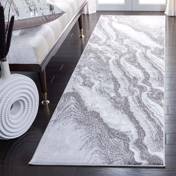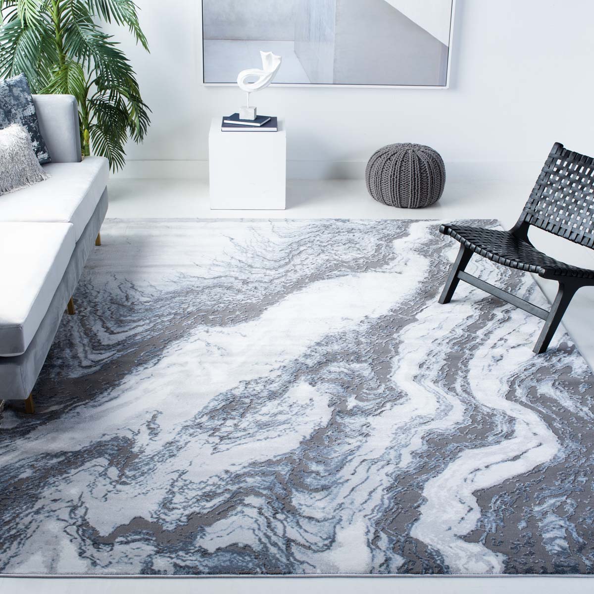 Transform your living space with the contemporary elegance of our power-loomed area rug. Measuring a versatile 2'-7" X 5' and featuring a stunning blue and grey palette, this small rectangle rug is the epitome of modern design. Crafted with the utmost precision, it has a comfortable 1/2" pile height that provides a plush underfoot experience.