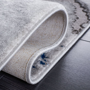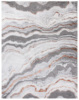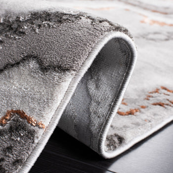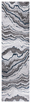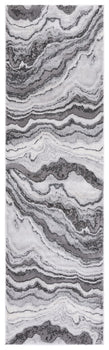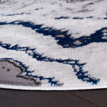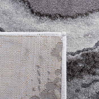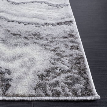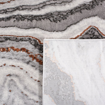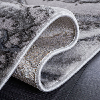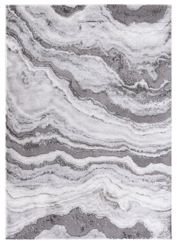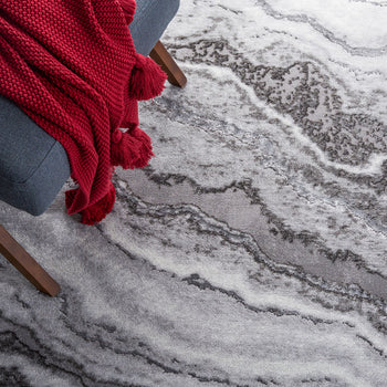 The rug's pattern, as depicted in the image, features an alluring play of GREY and DARK GREY tones, creating a dynamic and modern marble-like design that adds a touch of elegance to your floor. Its swirling lines evoke a sense of movement and sophistication that will complement a range of contemporary decors.