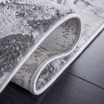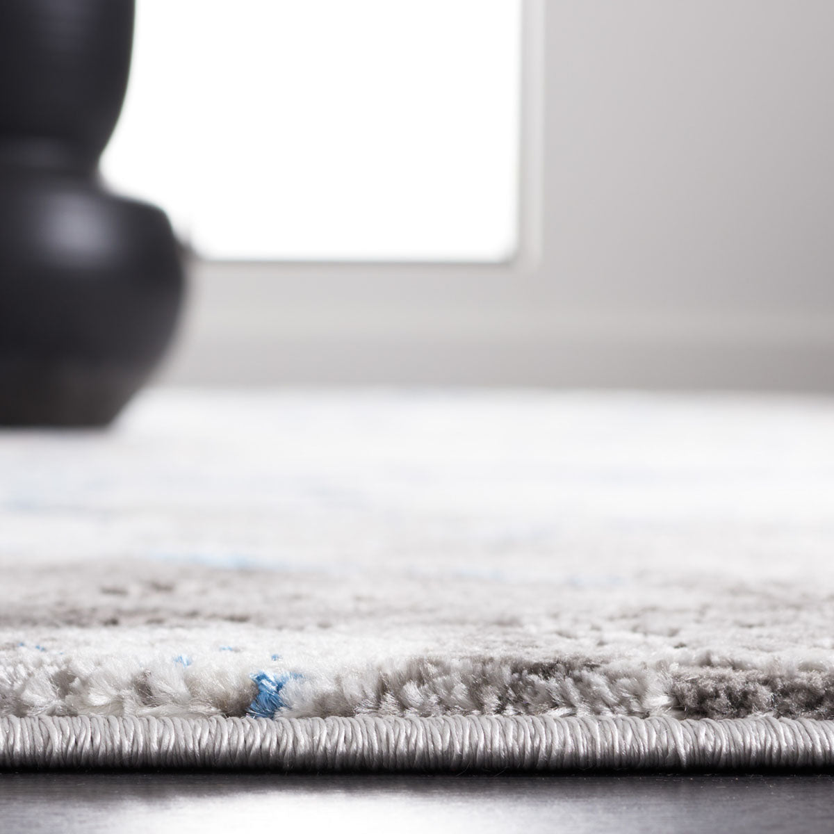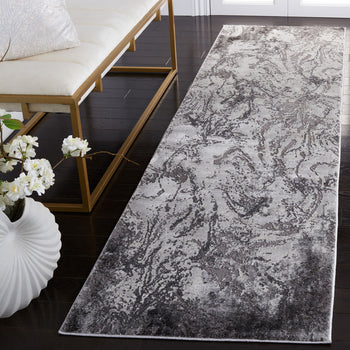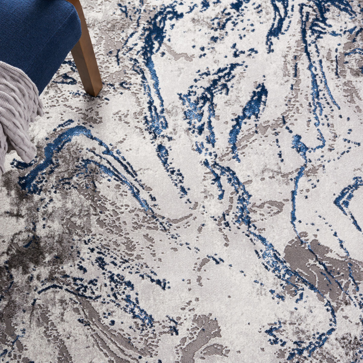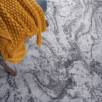 Constructed from a durable blend of 85% Polypropylene and 15% Polyester, this rug promises longevity and easy maintenance, making it a practical choice for any home. The contemporary style comes to life through a captivating pattern that swirls across the rug in shades of grey and silver, exuding an air of understated elegance that will effortlessly complement your existing decor.