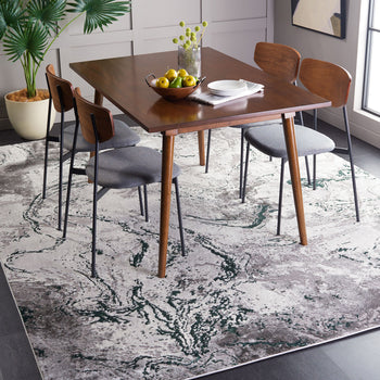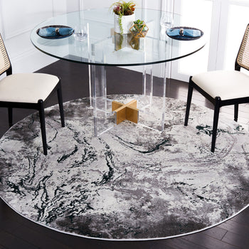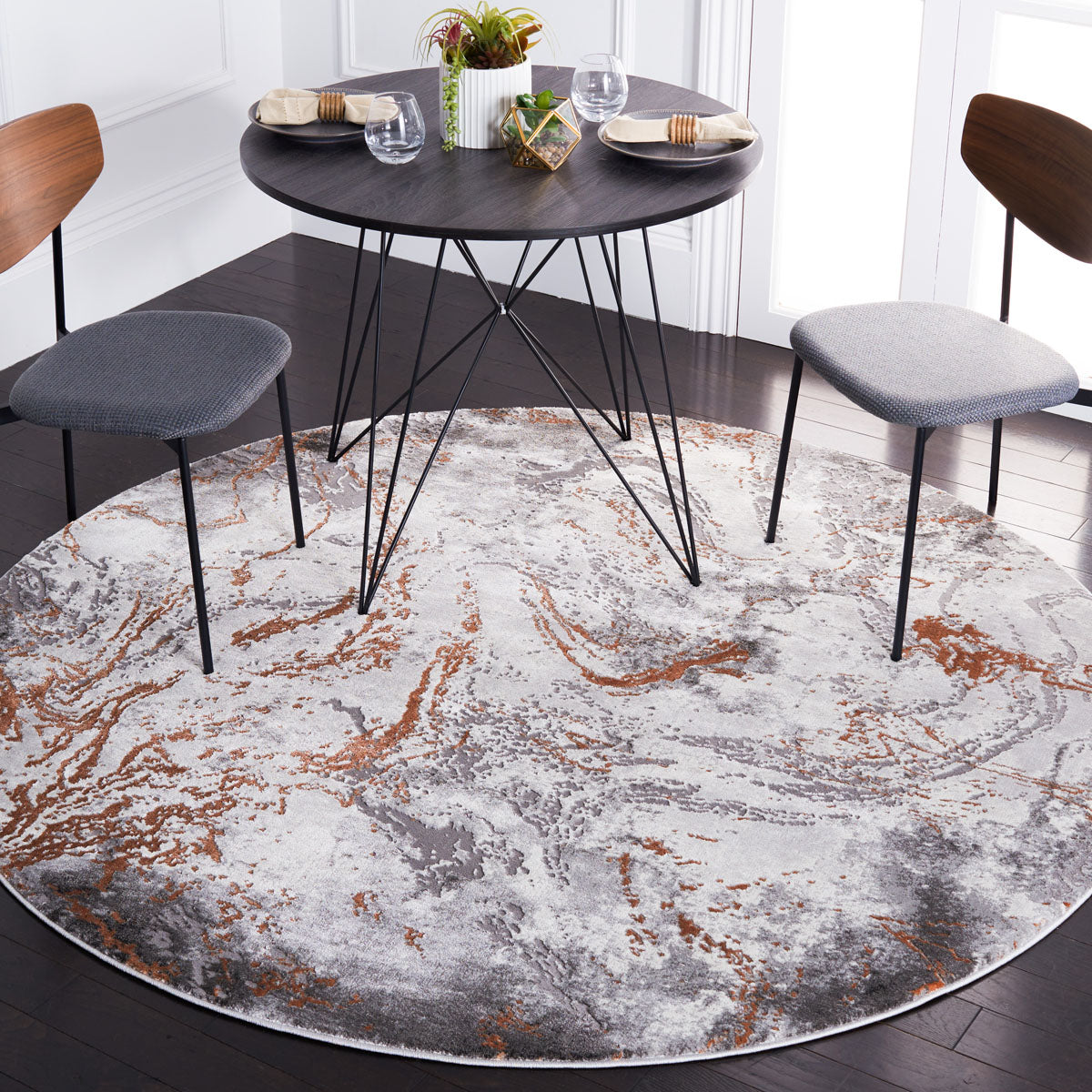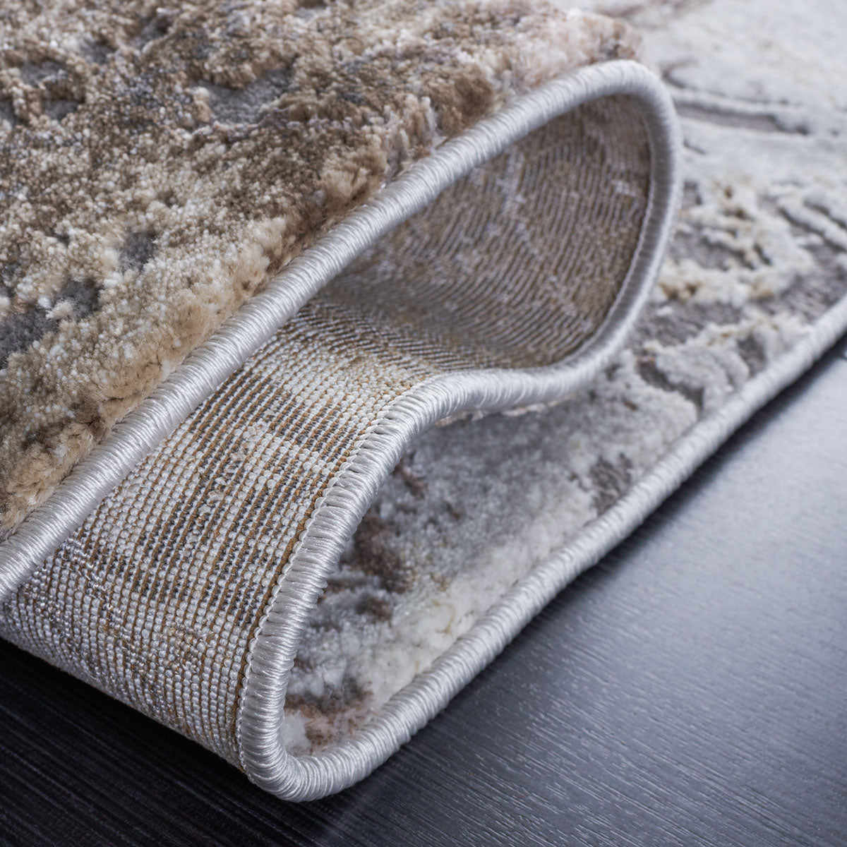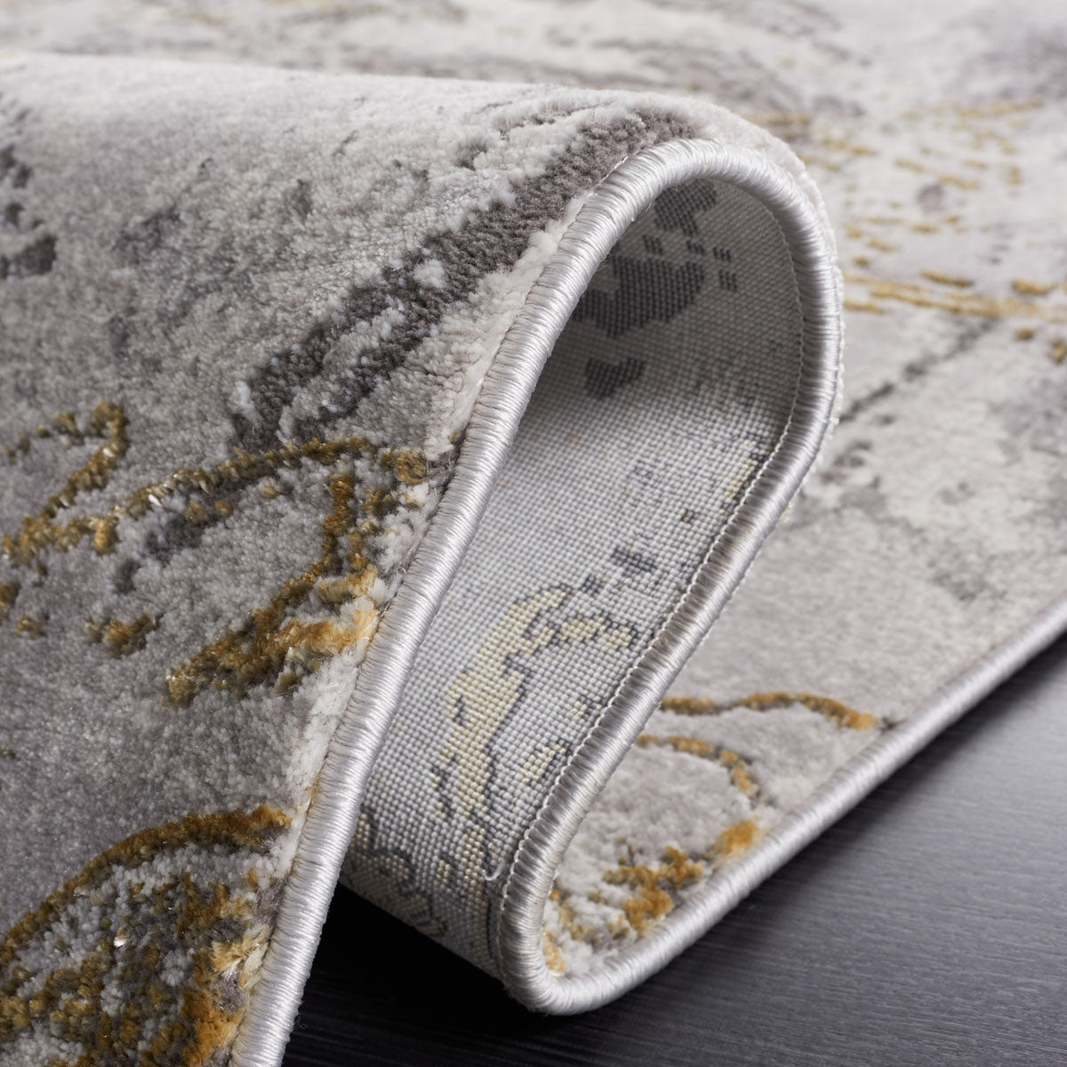 Constructed from a durable blend of 85% Polypropylene and 15% Polyester, this rug promises longevity and easy maintenance, making it a practical choice for any home. The contemporary style comes to life through a captivating pattern that swirls across the rug in shades of grey and silver, exuding an air of understated elegance that will effortlessly complement your existing decor.