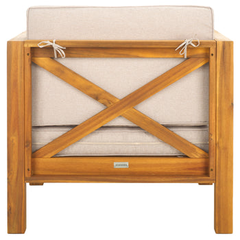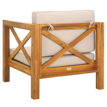 Experience the ultimate blend of style and comfort with the Crewe Outdoor Arm Chair. Crafted meticulously from the robust and elegant Acacia wood, this chair boasts a natural frame lending a touch of class and simplicity to your outdoor space. Not just the beauty, it comes equipped with light grey cushions made out of resilient polyester, ensuring you enjoy moments of relaxation in absolute comfort.