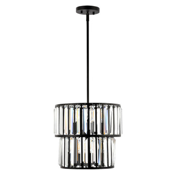 Give your decor a burst of Art Deco decadence with this captivating Crissa Chandelier. Casting a cosmopolitan glow, Crissa's Gatsby gala glamour shimmers from its two tiers of fine crystal details perfectly framed by a black metal frame, creating a lavish look in any room.