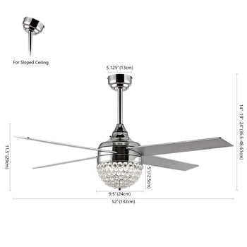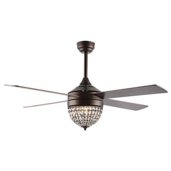 Embrace the luxurious charm of our Crista ceiling fan. Our multifunctional ceiling fan features a gorgeous light fixture. Its elegant semi-circular canopy is enriched with shiny crystals, allowing the fan to dazzle with luxury and glam. It is completed with an oil-rubbed bronze finish to lend a charming, lived-in appeal. The ceiling fan is fitted with 5 blades to deliver powerful airflow and comfort. A stunning centerpiece for any room, our ceiling fan serves as a durable and long-lasting addition to your home.