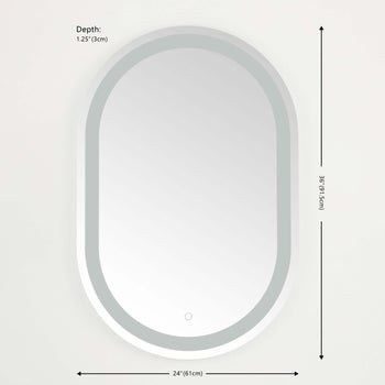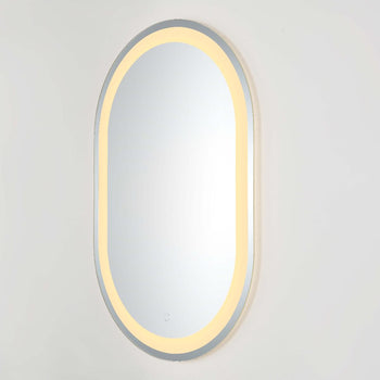 Give a contemporary update to your home with our sophisticated Crosby LED mirror. With curved edges and a sleek silhouette, our capsule-shaped mirror brings a fresh dimension to your home. The mirror includes an LED strip behind its frosted border to impart a soft ambient glow. Our mirror can elevate both the style and functionality of your space. It can be hung both vertically and horizontally to lend a chic appeal to your bathroom, bedroom, or wardrobe.