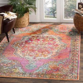 The rug's pattern, inspired by classic design elements and displayed vividly in the image, weaves together ornate motifs and symmetrical floral arrangements, creating a captivating centerpiece for your space. Its OEKO-TEX certification assures that it is free from harmful substances, providing peace of mind for you and your loved ones.