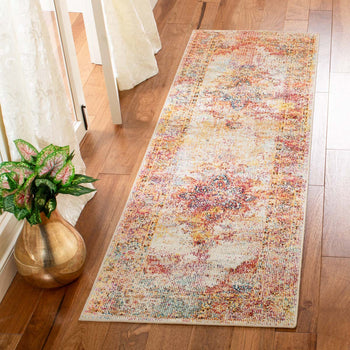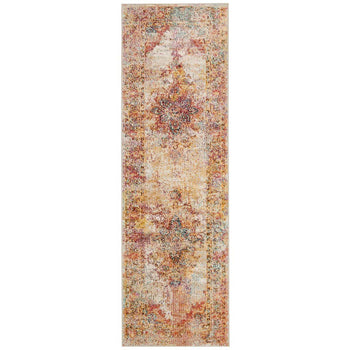Crafted using state-of-the-art Power Loomed technology, this polypropylene runner is not only durable but also exquisitely detailed. The intricate pattern, inspired by classic designs with a modern twist, features a harmonious blend of cream and rose hues, interwoven with subtle accents that capture the eye and invite a closer look.