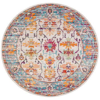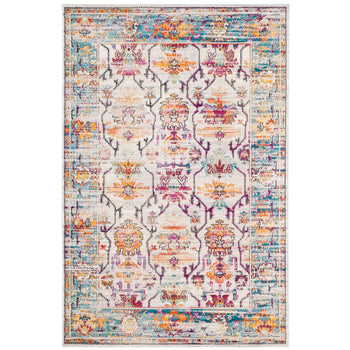 The rug's captivating pattern blends traditional motifs with a contemporary color palette, featuring an array of vibrant hues set against a soft cream background for an eye-catching effect. Constructed from resilient polypropylene, this piece promises durability and easy maintenance, ensuring it remains a focal point in your decor for years to come.