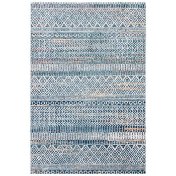 Introduce timeless elegance and artistic flair into your home with our exquisite Ivory/Blue Runner Rug. Measuring a versatile 2'-4" X 9', this contemporary runner is an ideal choice for long hallways or accentuating your kitchen or entryway. Delicate shades of ivory complement the cool blue hues, forming a sophisticated geometric pattern that invites admiration and conversation.