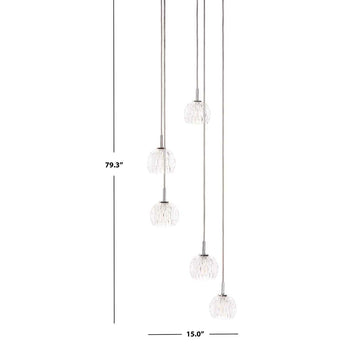 Designed to dance in the air like a shooting star, this contemporary pendant light lends stunning ethereal beauty to any dining room or living room. Each of its 5 shimmering crystal lights feature fine metal craftsmanship with a polished chrome finish.