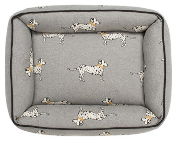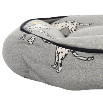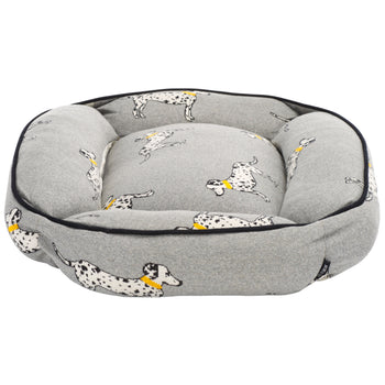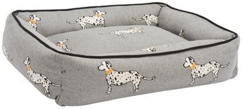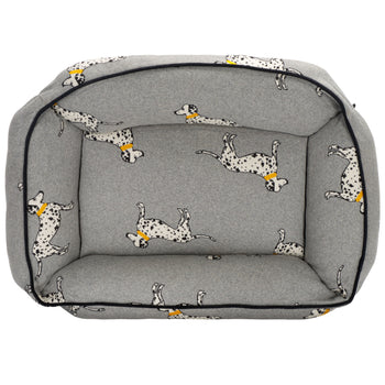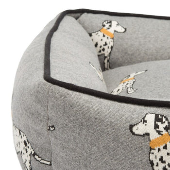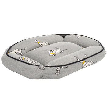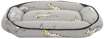 Indulge your furry friend with the luxurious comfort of our Dalmatian Dog Bed. Expertly crafted in India, this bed showcases sophisticated grey and ivory hues, adorned with an adorable dalmatian-patterned cover made of cotton. The durable polyester filling ensures a plush sleeping experience and optimum support. This rectangular bed offers ample space for restful slumber, while the cotton backing adds a layer of resilience. Easily maintain the bed's elegance - it's washable and lightweight effortless handling. Delight in its soft touch, plush cushioning, and the convenience of a washable design that keeps it fresh and inviting. A perfect blend of style, comfort, and practicality for the discerning pet owner.