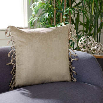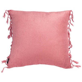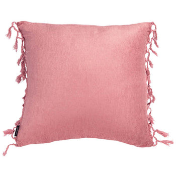 Awaken your interior with the colorful comfort of this beautiful Dandria Pillow. Dandria's rich pink cotton chenille fabric is luxuriously soft to the touch, and woven fringe tassel details make it a must-have for spirited boho Decor.