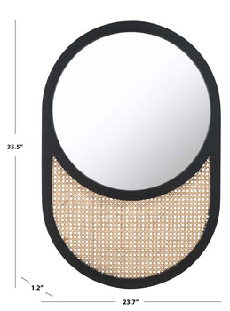 Embrace a modern and charming accent for your walls with our Danya wall mirror. A perfectly rounded mirror sits within a capsule shape frame to lend a playful and eye-catching design. Its natural elm wood frame creates an airy contrast with the woven wood. Inviting the warmth of natural textures to your home, the wall mirror lends a fresh rustic touch to your home. It can serve as a stylish textural accent for your living area, dining room, or bedroom.