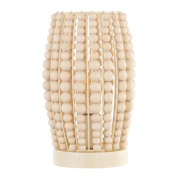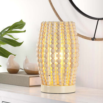 At Home In Any Boho Or Contemporary Interior, This Darrow Table Lamp Is An Alluring Addition To Your Decor. The Soft Cream Tone Of Darrow's Streaming Wood Beads Allows For A Warm Glow Amidst The Artistic Negative Space, Beautifully Illuminating Its Stylish Surroundings.