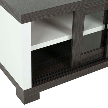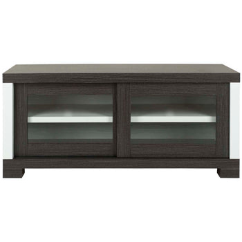 Bring a sculptural element into the media room with the Davis Sliding Door Entertainment Console. Its combination charcoal, white and wood grain finish boasts a timeless, contemporary aesthetic and its ample storage is perfect for hiding the unsightly elements of modern visual culture.