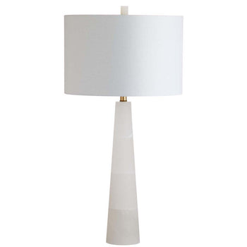 Ethereal and sophisticated, this Delilah Table Lamp is a modern classic. Defined by the sculpted curves of its timeless white alabaster, Delilah's brass gold details and off white shade make a grand, glamorous statement in any room.