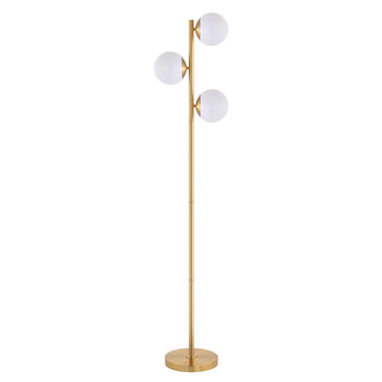 Brilliantly styled to reinvigorate any room, this Devlyn Floor Lamp beautifully blends Mid-Century chic with contemporary class. Devlyn's three white glass globe shades cast light in multiple directions to fully illuminate your Decor while emanating a sense of depth, while its shimmering gold finish is absolutely glamorous.