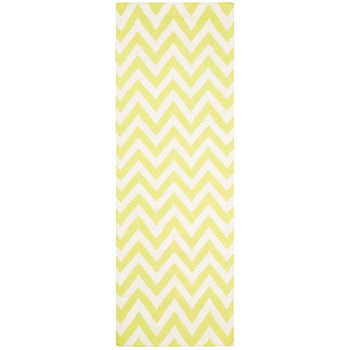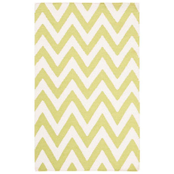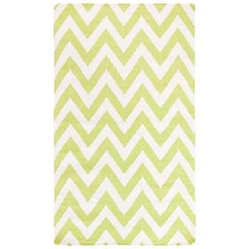 Introducing our beautifully handcrafted area rug, a perfect addition to any space that seeks a touch of sophistication and modern flair. Designed to elevate your home decor, our accent rug measures 2'-6" x 4' and seamlessly blends a vibrant green and soothing ivory palette in a striking zigzag pattern.